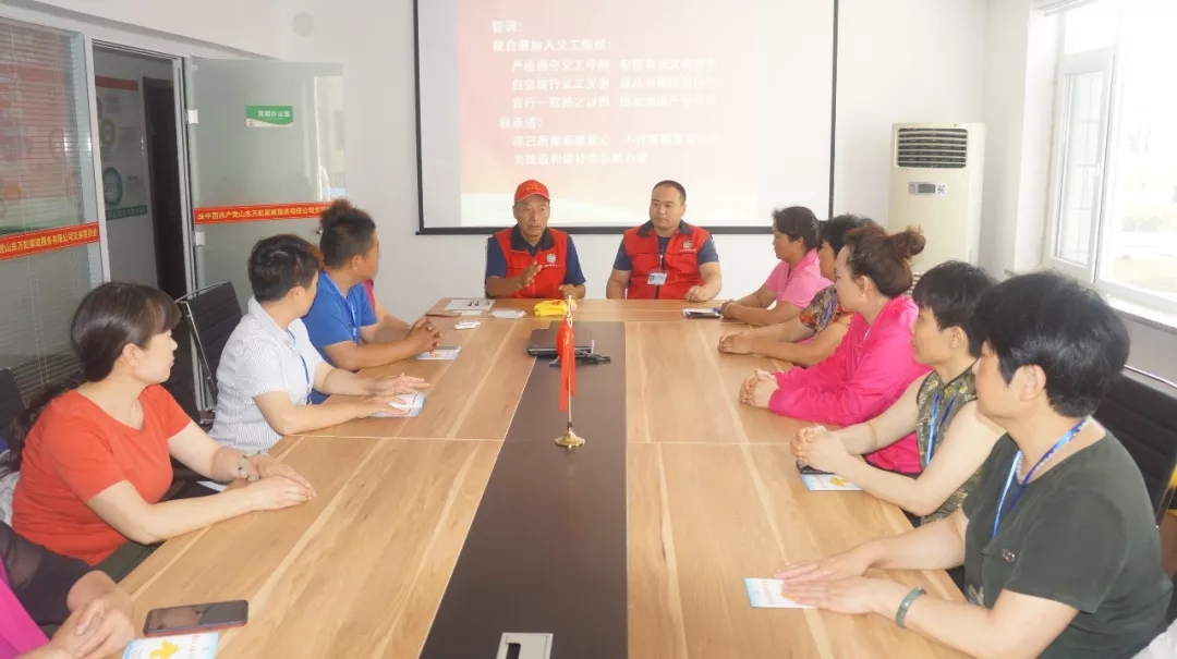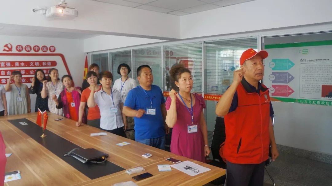 6月30日上午,在山東萬虹家政服務(wù)有限公司的黨建辦公室,23名新參加的家政義工代表,舉行了座談,并在義工孫海艇董事長的帶領(lǐng)下,舉行了莊嚴的義工宣誓,用實際行動、愛心的表達,獻禮“七一”黨的生日。