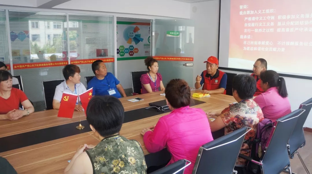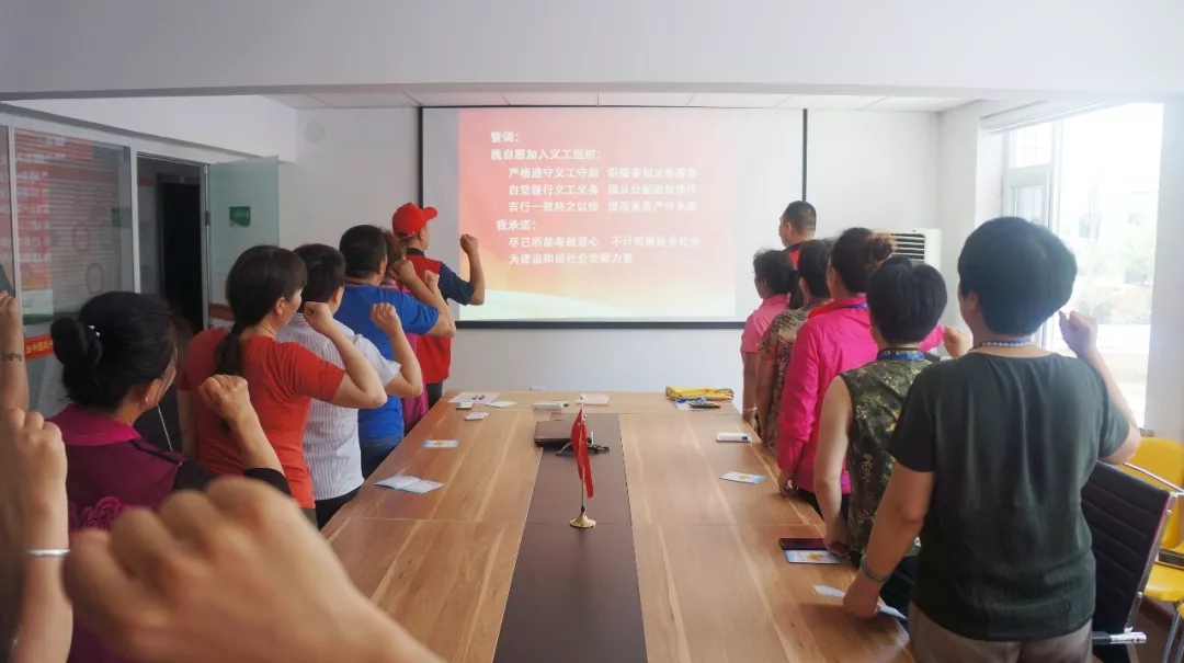 最后,在孫海艇董事長和郭丕義主任的帶領(lǐng)下,大家高舉右拳,用鏗鏘有力的聲音,決心履行諾言,助人為樂,爭當星級義工,為公司的健康發(fā)展、不斷提升萬虹家政的企業(yè)品牌和美譽度努力工作,為煙臺市文明城市建設(shè)再上新臺階盡綿薄之力!??