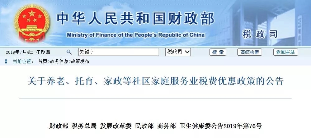 財(cái)政部:關(guān)于養(yǎng)老、托育、家政等社區(qū)家庭服務(wù)業(yè)稅費(fèi)優(yōu)惠政策的公告