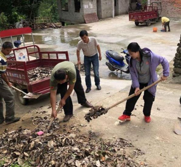 圖為黃文秀生前帶領(lǐng)村民清理村里的垃圾