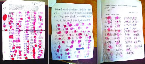 圖為小崗村民為挽留沈浩,三次按下的紅手印