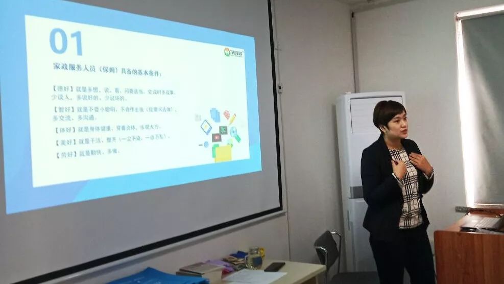 期間王老師為大家一一分發(fā)了家政培訓(xùn)教材,有的學(xué)員接過(guò)教材,迫不及待地翻閱起來(lái),今天大家都表現(xiàn)出很高的積極性。王老師還教導(dǎo)學(xué)員家政服務(wù)人員需具備的基本條件是“德好”“智好”“體好”“美好”及“勞好”,需做五好人員。其中她強(qiáng)調(diào)了不僅要干活好還要人品好,才能受到更多家庭的青睞!王老師聲情并茂地講述了一上午,大家收獲頗豐。學(xué)員們雖然大部分是四十歲左右的大姐,但是做起筆記就像小學(xué)生一樣認(rèn)真,還有的學(xué)員紛紛拿手機(jī)拍照大屏幕上的課程重點(diǎn),稱回家后慢慢“消化”知識(shí)點(diǎn)。??