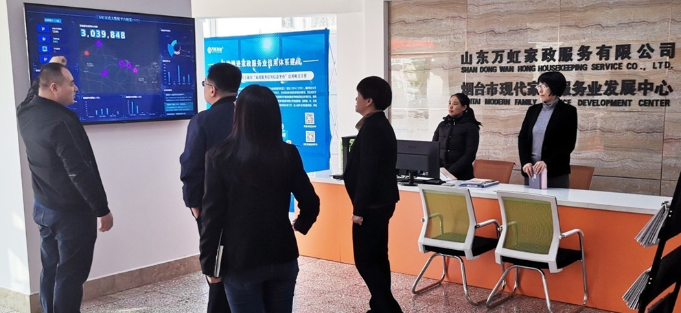 王升瑋主任與陳婉璐副主任剛走進(jìn)萬(wàn)虹家政服務(wù)大廳就被眼前的大數(shù)據(jù)展示屏所吸引,孫海艇向其詳細(xì)介紹了萬(wàn)虹大數(shù)據(jù)的運(yùn)用,當(dāng)?shù)弥髷?shù)據(jù)平臺(tái)為萬(wàn)虹家政公司自行研發(fā)并完全擁有著作權(quán)時(shí),兩位領(lǐng)導(dǎo)對(duì)孫總的眼光及公司的特色給予高度認(rèn)可,稱(chēng)贊家政行業(yè)加上大數(shù)據(jù)未來(lái)將會(huì)大有所為。??