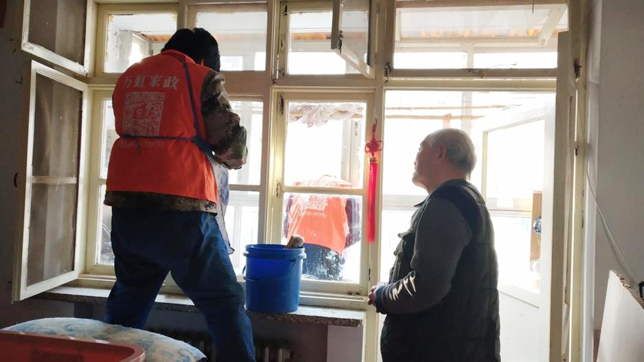 02而后走進(jìn)社區(qū)的一戶(hù)失獨(dú)家庭,大媽得知萬(wàn)虹家政志愿服務(wù)隊(duì)又來(lái)幫忙擦玻璃,立馬說(shuō):“哪能一再麻煩你們,大爺他明天就要去住院復(fù)查了,就不用擦了?!彼睦习樵?018年夏天查出換了癌癥,但老倆口十分樂(lè)觀和善,保潔員崔姐堅(jiān)持:“我擦的快,等你們從醫(yī)院回來(lái)家里就更敞亮了!”言辭之間都是祝愿老人安康,老人很受感動(dòng),雙手合十對(duì)萬(wàn)虹家政表示感謝。