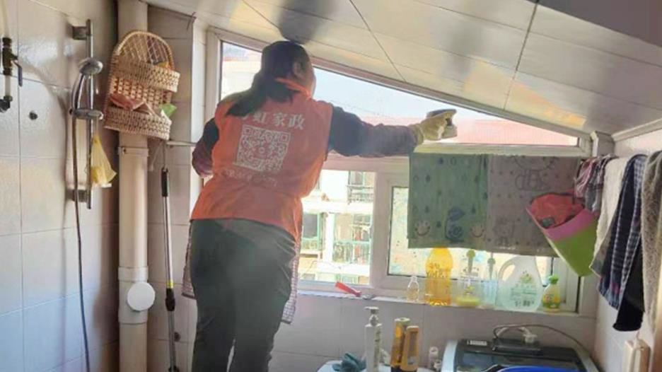 01上午八點(diǎn)半,在社區(qū)工作人員的帶領(lǐng)下,萬(wàn)虹家政志愿服務(wù)隊(duì)首先來(lái)到社區(qū)內(nèi)一位80歲高齡的空巢老人家中,洗紗窗、擦玻璃、清理窗槽……一樣也不落下,窗戶(hù)玻璃由灰暗變得明亮,老人的家感覺(jué)一下子亮堂了很多,萬(wàn)虹家政的專(zhuān)業(yè)與負(fù)責(zé)得到了老人的高度認(rèn)可。志愿者姚霞從老人的口音中分辨出是湖南老鄉(xiāng),在得知老人離開(kāi)家鄉(xiāng)近30年時(shí)間,陪同老人聊了家鄉(xiāng)的變化和鄉(xiāng)土人情,使老人真正感受到了“巢空心不空”。