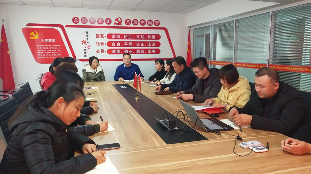 2019年12月23日下午,山東萬虹家政服務(wù)有限公司“入黨積極分子雙推”會(huì)議在總部黨建會(huì)議室舉行,開發(fā)區(qū)福萊山街道黨委張玲主任出席會(huì)議并進(jìn)行監(jiān)督指導(dǎo),公司黨支部書記孫海艇與其他黨員、群眾代表參加會(huì)議。