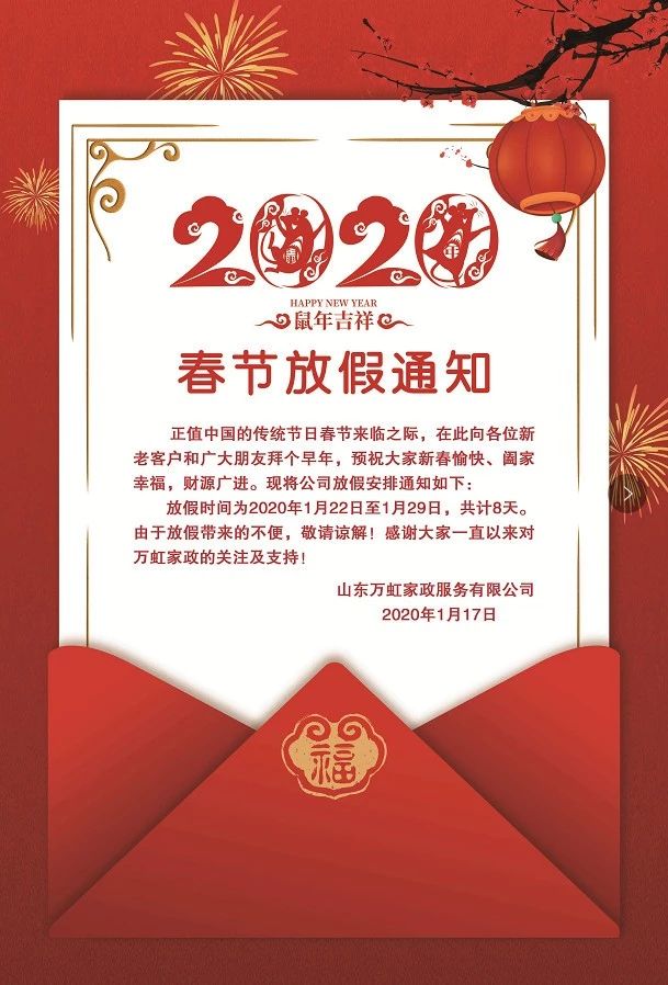 山東萬虹家政服務(wù)有限公司2020年新春賀詞