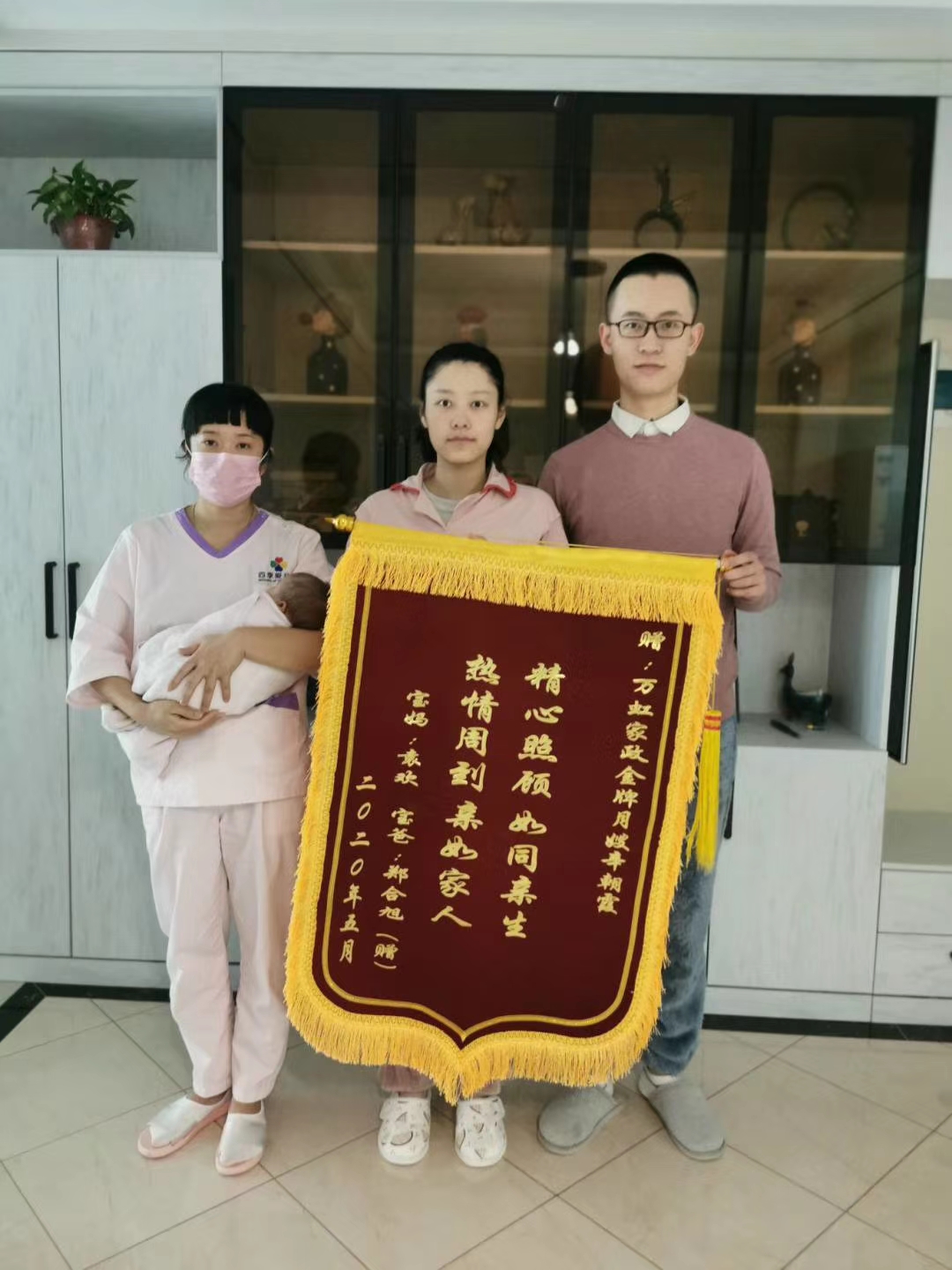 辛朝霞一邊安慰鼓勵寶媽,一邊下定決心迎難而上,她對公司派單老師說:“寶媽現(xiàn)在很焦慮,我只能盡力安撫她,給她安全感,生孩不是別的事可以延期,所以我必須去!我不是個輕易放棄的人,我會保護好自己,盡全力照料好寶媽和寶寶?!彼畔伦约簝H3歲多的孩子奔赴醫(yī)院,“剖腹產(chǎn)、男孩、一切正常!”她每天都會向公司匯報情況,比平時更加小心、細心,所用物品隨時消毒,耐心處理各項突發(fā)狀況。出院后,由于小區(qū)隔離,只能跟著寶媽借住朋友家,她心疼寶寶不能回家、不能跟隔離中的爸爸相見,把這對母子當(dāng)做家人一樣細心呵護,為寶爸消除顧慮!