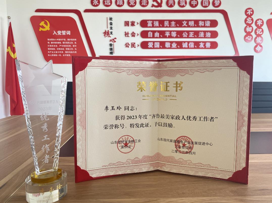 【喜報】李玉玲被評為2023年山東省家政服務(wù)業(yè)“齊魯最美家政人”優(yōu)秀工作者