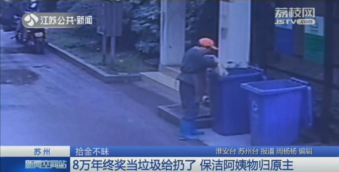 江蘇一男子錯(cuò)把8萬(wàn)元年終獎(jiǎng)當(dāng)垃圾扔了,保潔員撿到后歸還